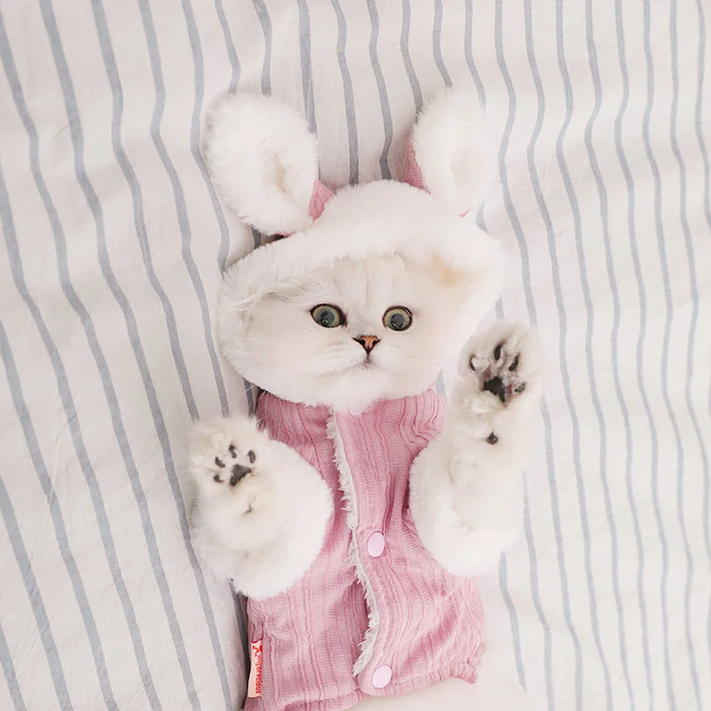Осенне-зимняя теплая одежда для домашних животных, милый костюм кролика для собак, хлопковый костюм для кошек, щенков, теплый костюм для кролика, наряд для собак
