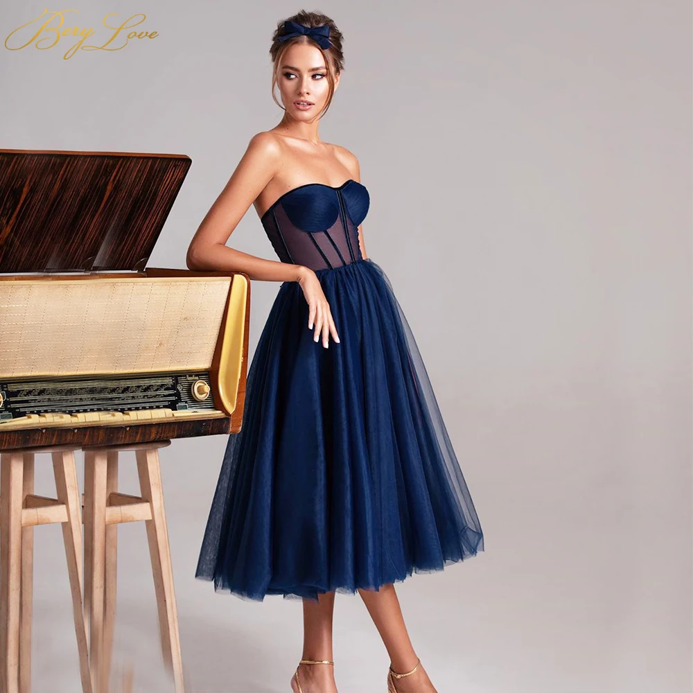Женское короткое вечернее платье, ТРАПЕЦИЕВИДНОЕ ПЛАТЬЕ до середины иллюзии, без бретелек, с лифом