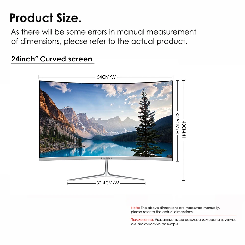 Монитор HUGON, 24 дюйма, изогнутый ЖК-экран 23,8 дюйма, для ПК, 75 Гц, 1920 1080p, HD, игровой дисплей, VGA, для интерфейса HDMI
