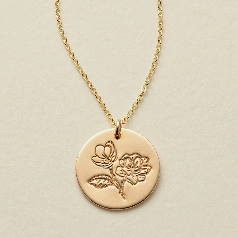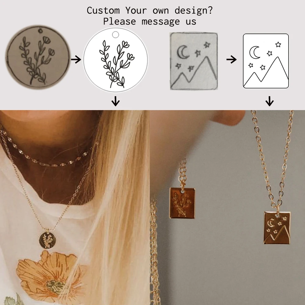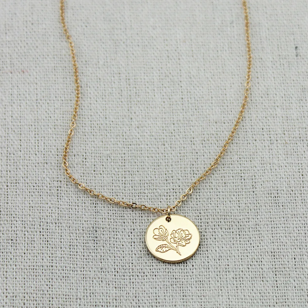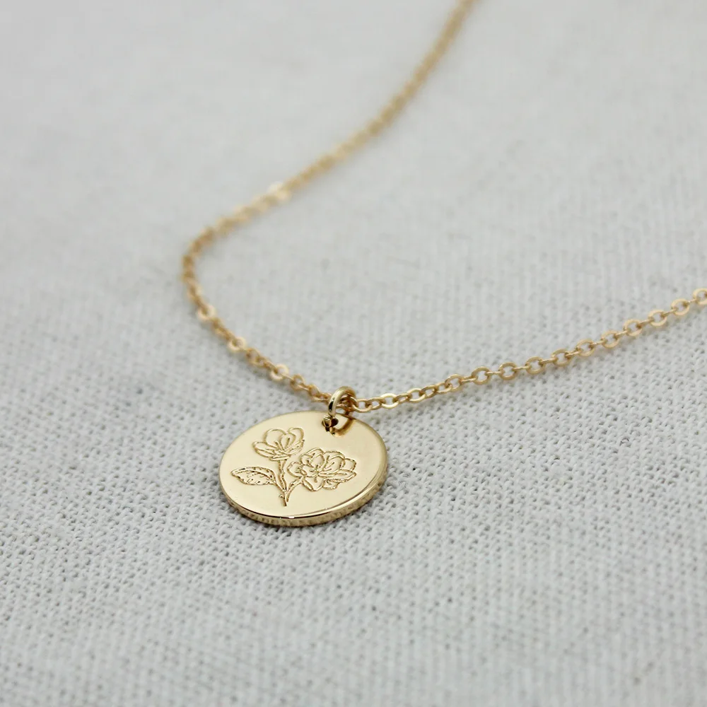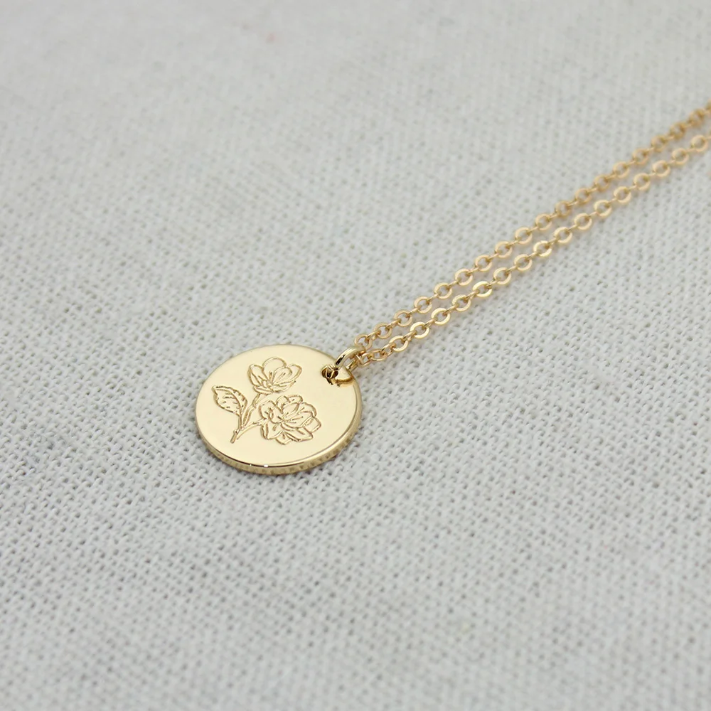 Нежные дикие цветы вдохновленные ожерелье Простой вдохновляющий диск Кулон ожерелье ювелирные изделия 15 мм, 18 дюймов