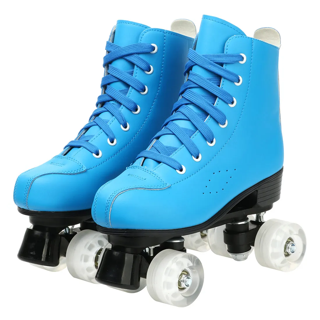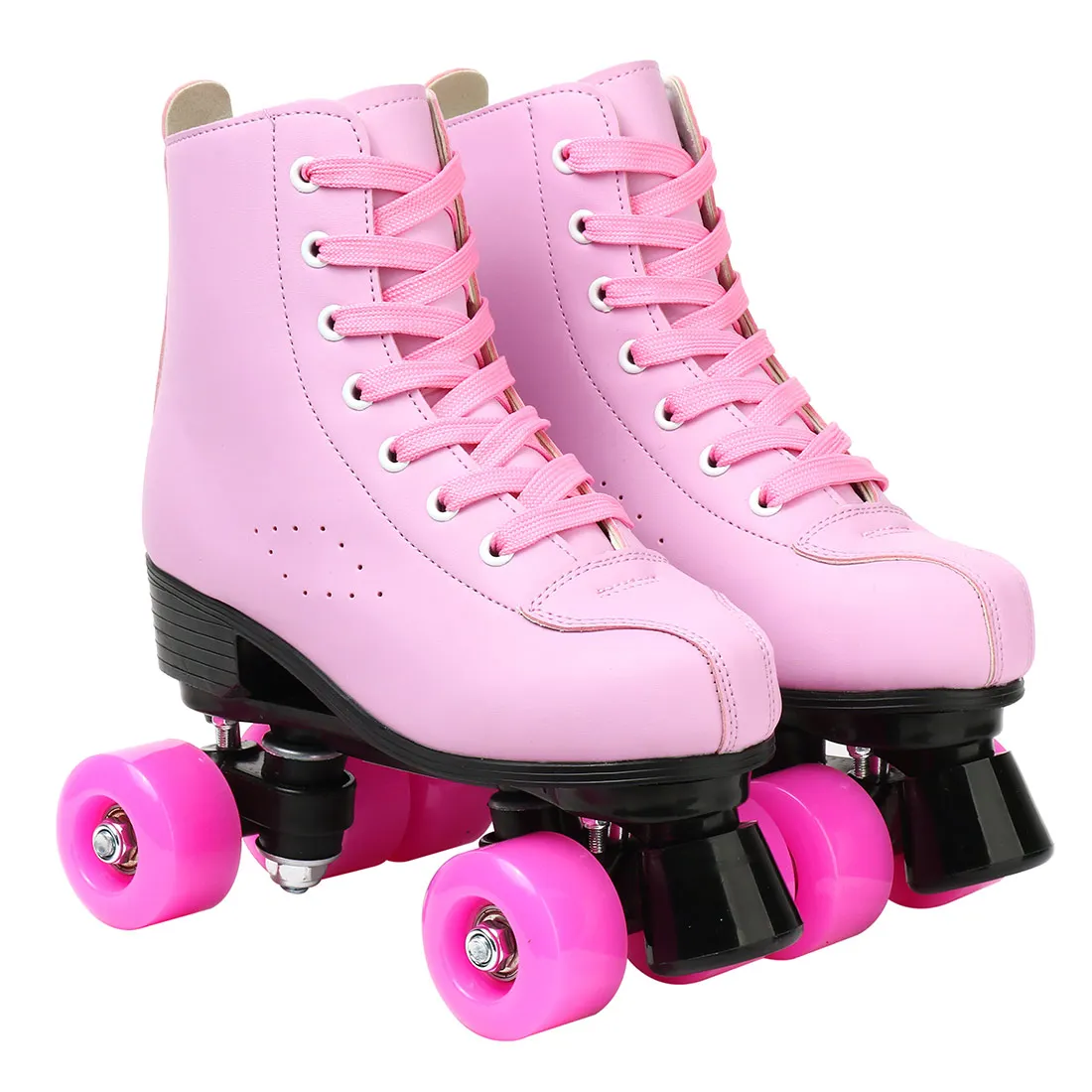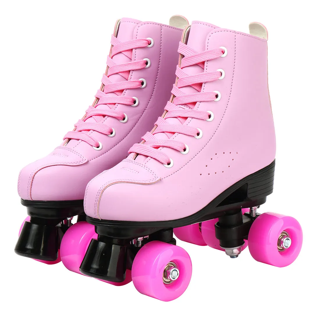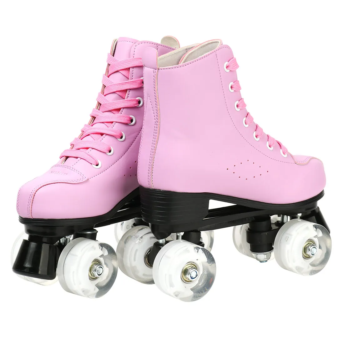 Роликовые коньки для взрослых из искусственной кожи, розовые, синие, красные, Двухлинейные, с полиуретановым мигающим колесом