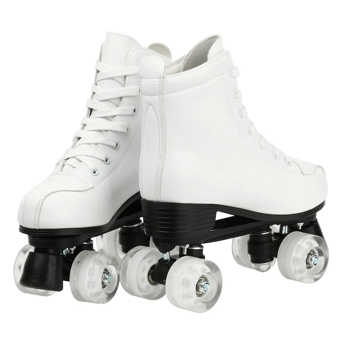 Искусственная кожа роликовые коньки двойной линии коньки женщины мужчины взрослые две линии коньки обувь патина с белым PU 4 колеса Patins