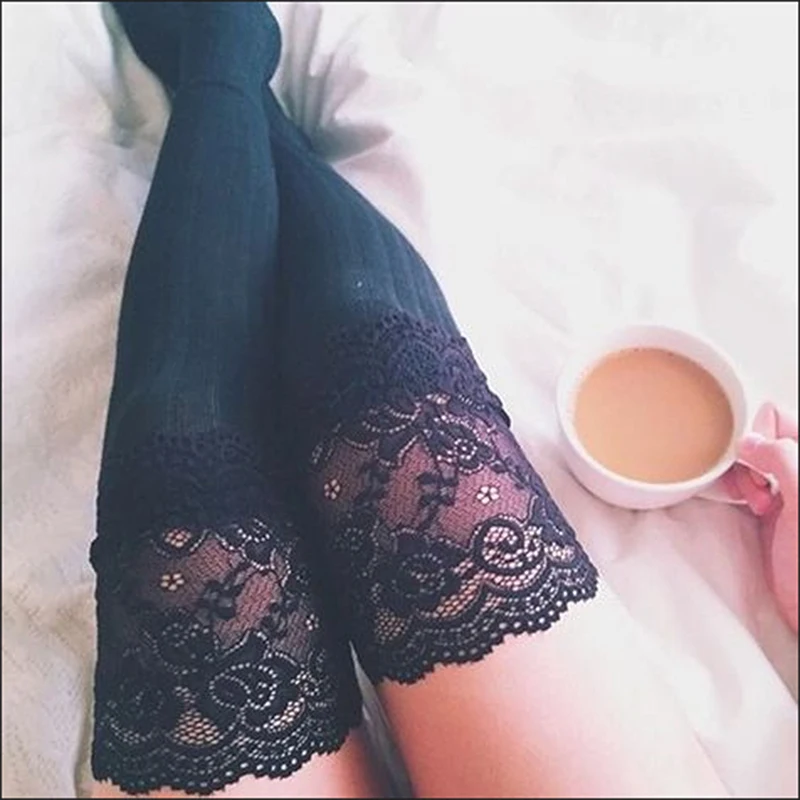 Женские кружевные вязаные хлопковые чулки выше колена, высокие носки, колготки, колготки