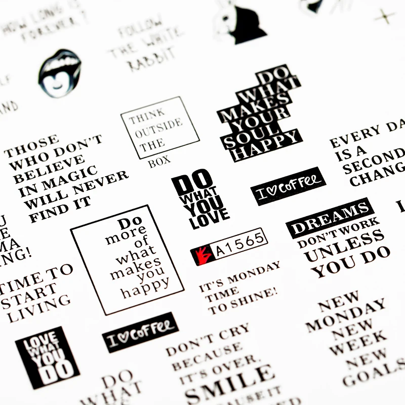 Наклейка водная 12 листов с изображением лица, переводная наклейка с цветами, растениями и английскими словами, слайдер, водяной знак, обертывания для дизайна ногтей