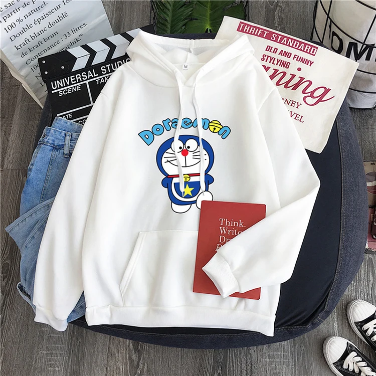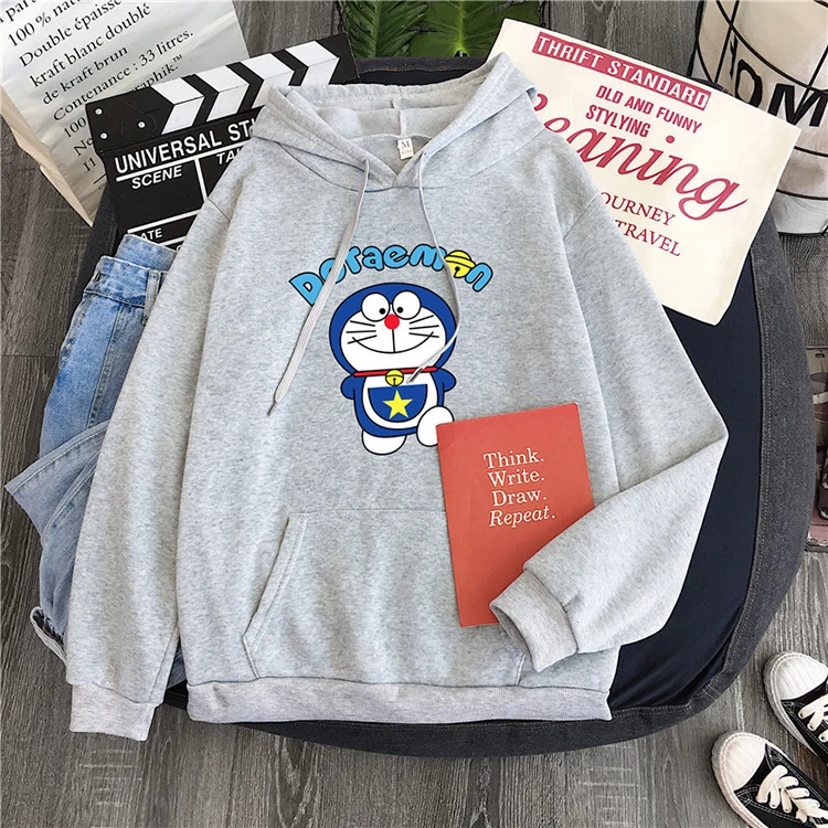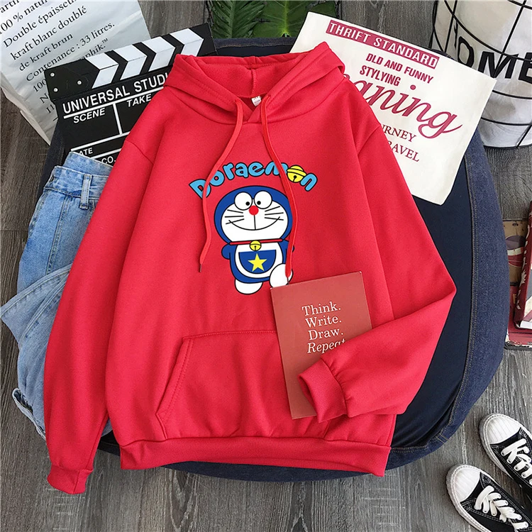 Женская Повседневная Толстовка с длинным рукавом, теплое фиолетовое пальто с капюшоном, толстовки с принтом дораэмона, повседневные пуловеры, спортивная одежда оверсайз