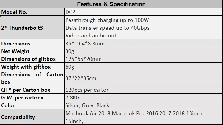 Адаптер DC2 Dual Thunderbolt3 для Macbook ProMacbook Air type c порт защиты двойной порт