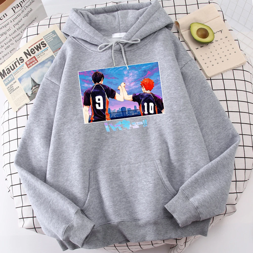 Толстовка мужская Haikyuu с мультяшным принтом, Модный свитшот с круглым вырезом, худи, теплый осенний пуловер, уличная одежда с японскими аниме-принтами