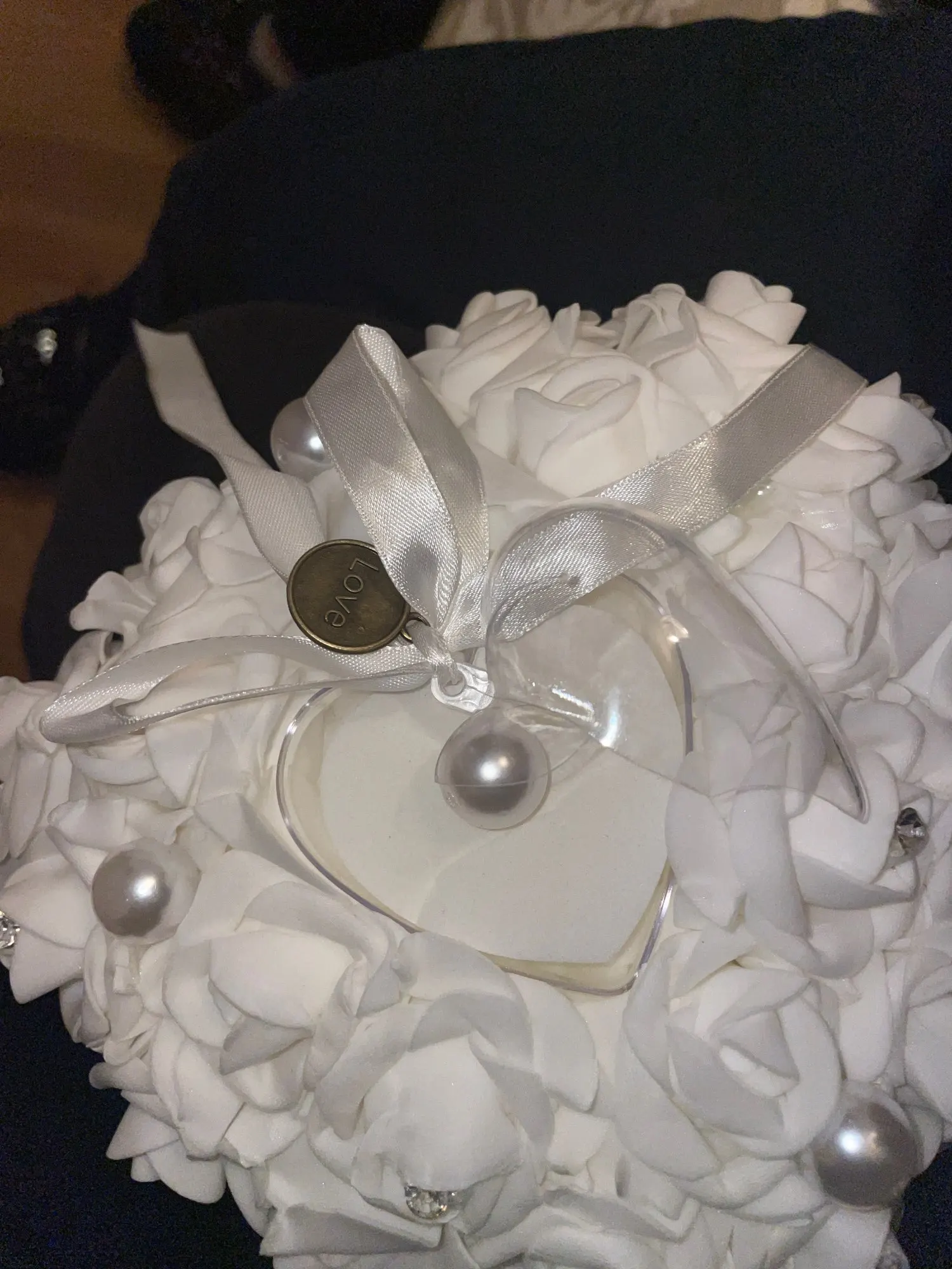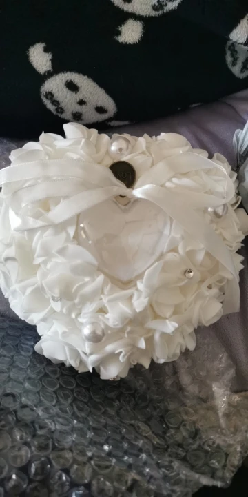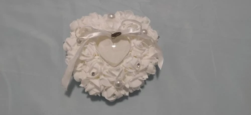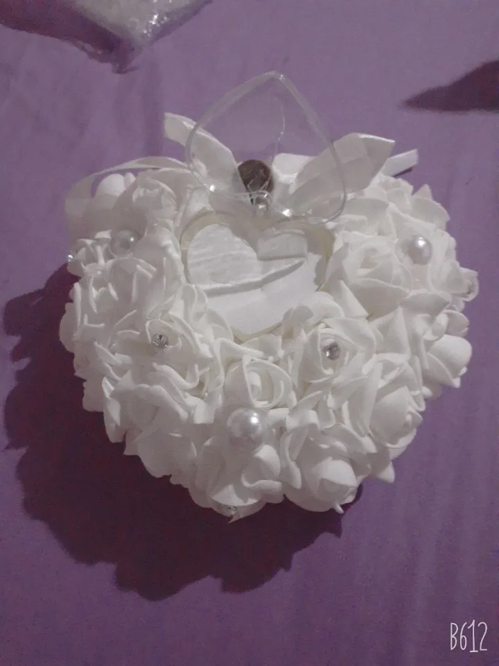 Романтическая свадьба слоновая кость сатин Кристалл кольцо предъявителя Подушка кольцо Подушка в форме сердца для помолвки предложение Свадебный декор