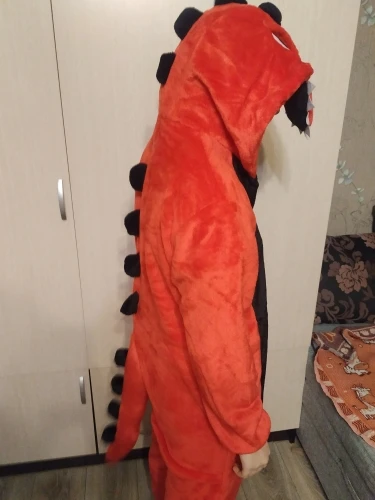 заказывала 25.11.21 года за 1562р. в СПб приехало 3.01.22, хотя должно было приехать 25.12. ОЧЕНЬ МНОГО МИНУСОВ: -продавец на вопросы не отвечал, игнорировал. -приехало сие чудо в грязном пакете. -выглядит совершенно не похоже на фото в объявлении. ужасно по качеству. нитки торчат, -глаза сделаны на разном уровне. - ткань тонкая. просвечивает - на пузе только 4 пуговицы из-за чего все просвечивает, то есть как пижаму не наденешь. -сам костюм воняяет. НО Это ещё не самое ужасное: заказывала на рост 180, по сетки должно было подойти XL, по итогу -УЖАСНО МАЛОМЕРИТ. Для примера на фото попросила надеть младшую сестру с ростом 150 и ей пижама как раз подошла. как можно так нагло врать о размере. Было бы возможно поставила бы ещё ниже оценку. Не советую связываться с продавцом
