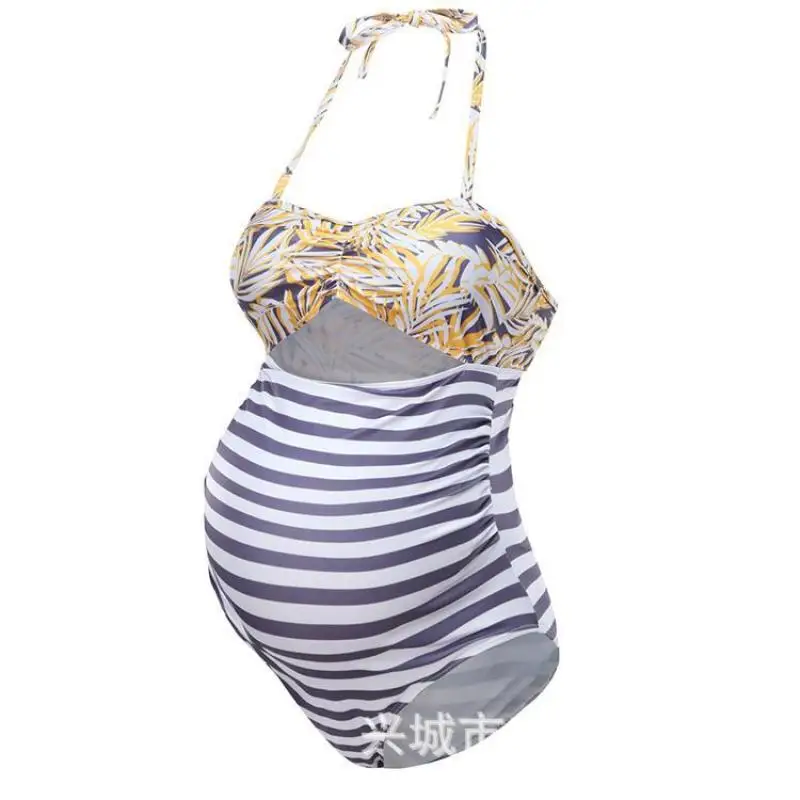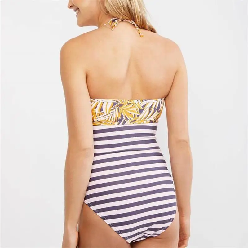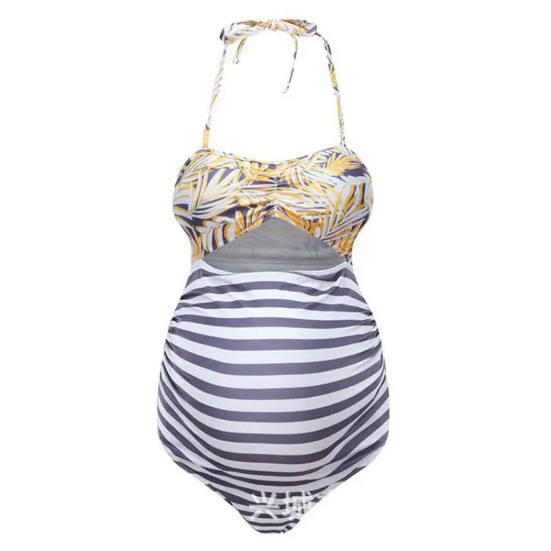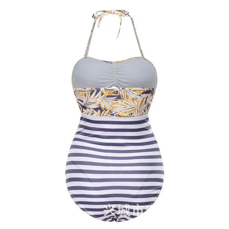 Летний слитный купальник для беременных, пикантная популярная одежда для беременных, в полоску, в стиле пэчворк, Европейский купальник для беременных