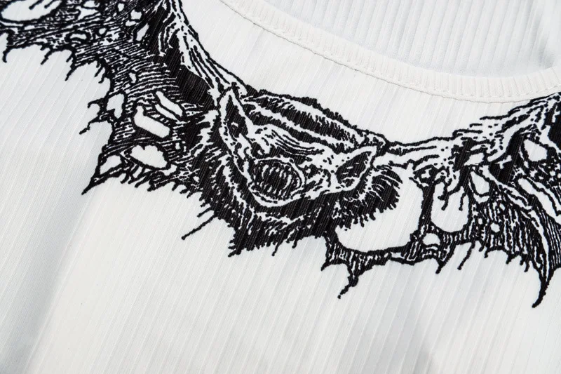 Женские пикантные Топы в готическом стиле, белые майки с принтом в стиле панк, облегающие Клубные Повседневные женские короткие топы, уличная модная футболка, одежда, 2021