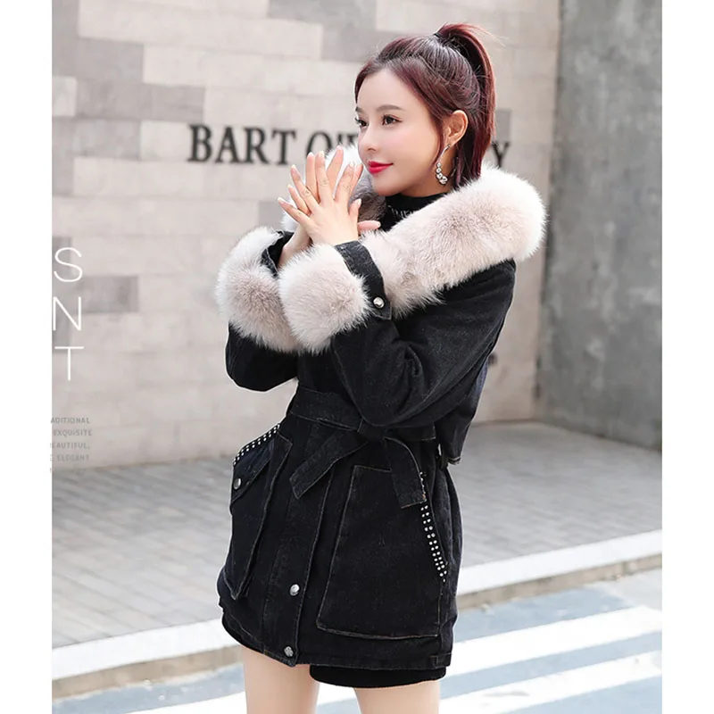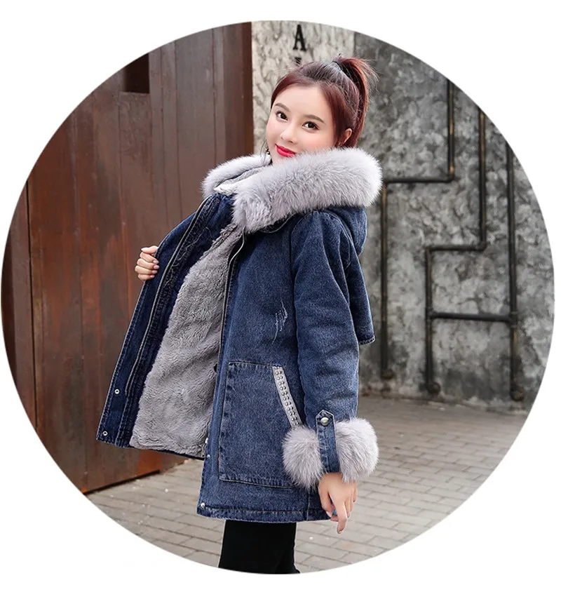 Джинсовая зимняя верхняя одежда, новинка, женские толстые парки из ...