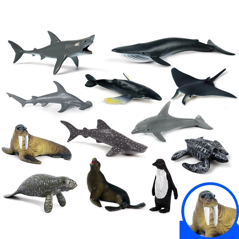 12 шт., миниатюрная модель морского животного, Гигантский зуб, Акула, Косатка, синий кит, Акула, пингвин, дельфин, игрушка