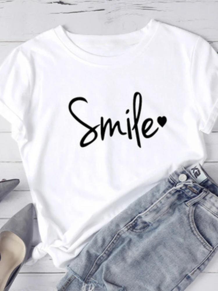 Женская футболка с коротким рукавом, круглым вырезом и надписью Smile