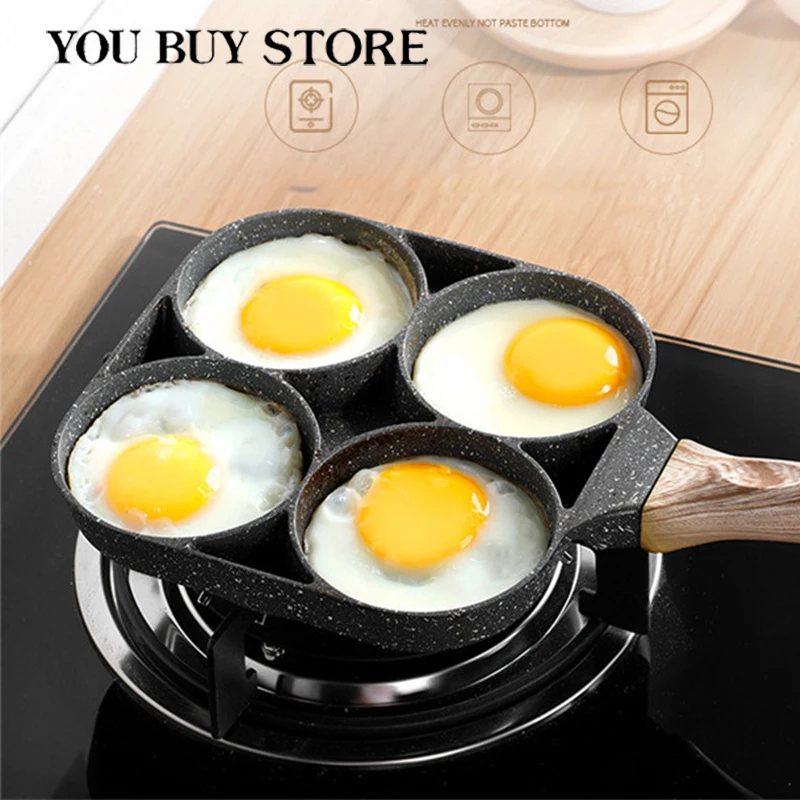 4 отверстия сковорода для омлета жарки горшок утолщенной с антиприг...