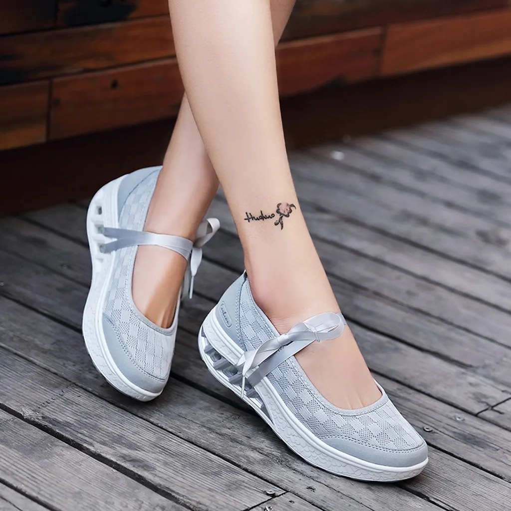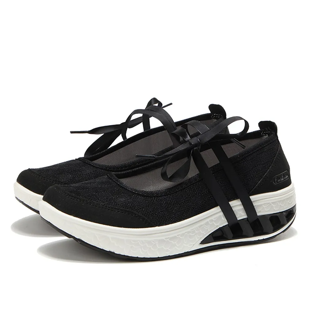 Модные Женские однотонные туфли на шнуровке на танкетке, дышащая обувь большого размера на платформе, повседневные спортивные кроссовки для прогулок #35