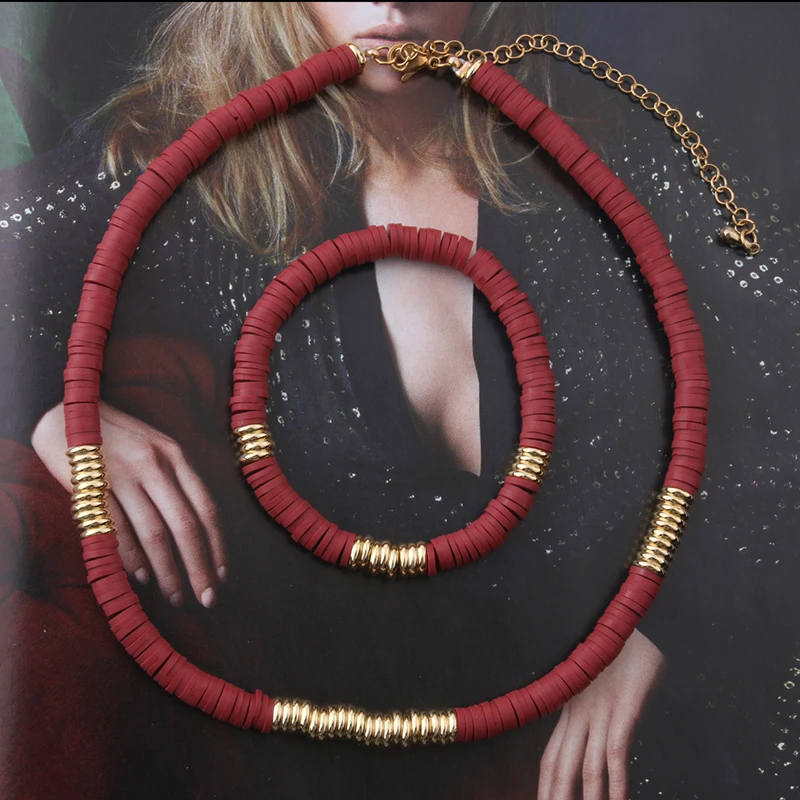 Цепочка NeeFu WoFu из нержавеющей стали для женщин, красное ожерелье в богемном стиле с флуоресцентной подвеской, ювелирные украшения