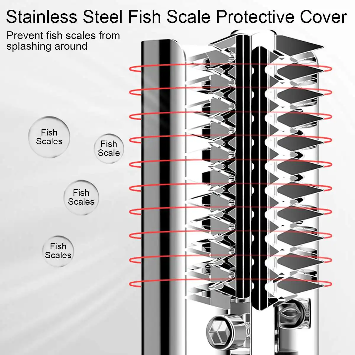 -Защита для чешуи из нержавеющей стали предотвращает брызги рыбы вокруг и защищает руки от повреждения лезвием.