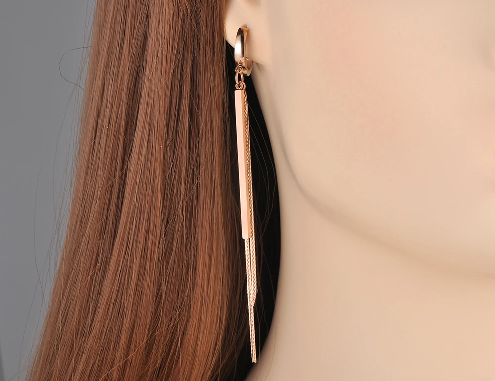 YiKLN Простые Длинные серьги-кисточки из розового золота с полоской...