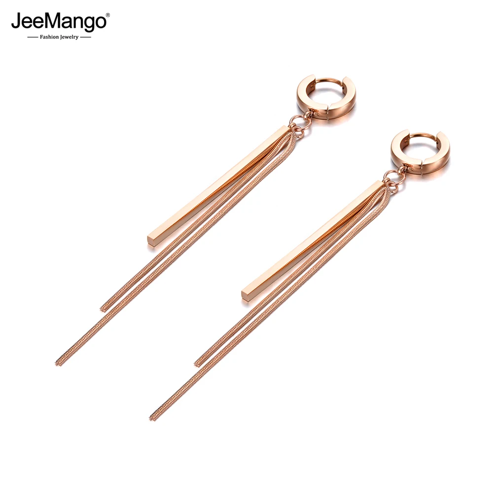 Женские серьги-кольца JeeMango, простые длинные серьги в полоску и цепочке с кисточками из титановой стали, богемные серьги-кольца для вечеринки, модель 19228