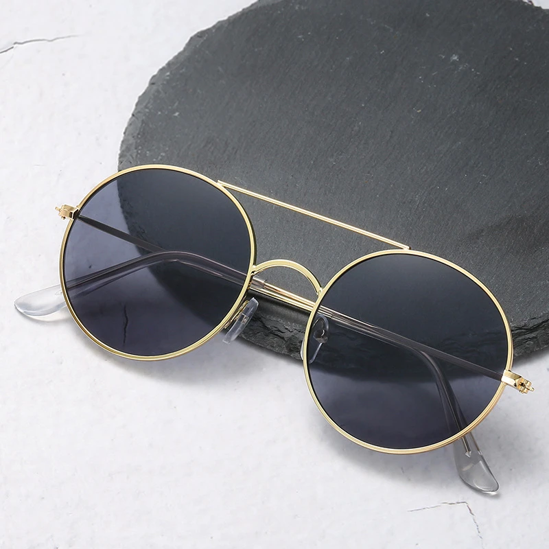 2020 черные солнцезащитные очки для женщин и мужчин, винтажные Круглые Солнцезащитные очки с двойным лучом, брендовые дизайнерские зеркальные очки UV400