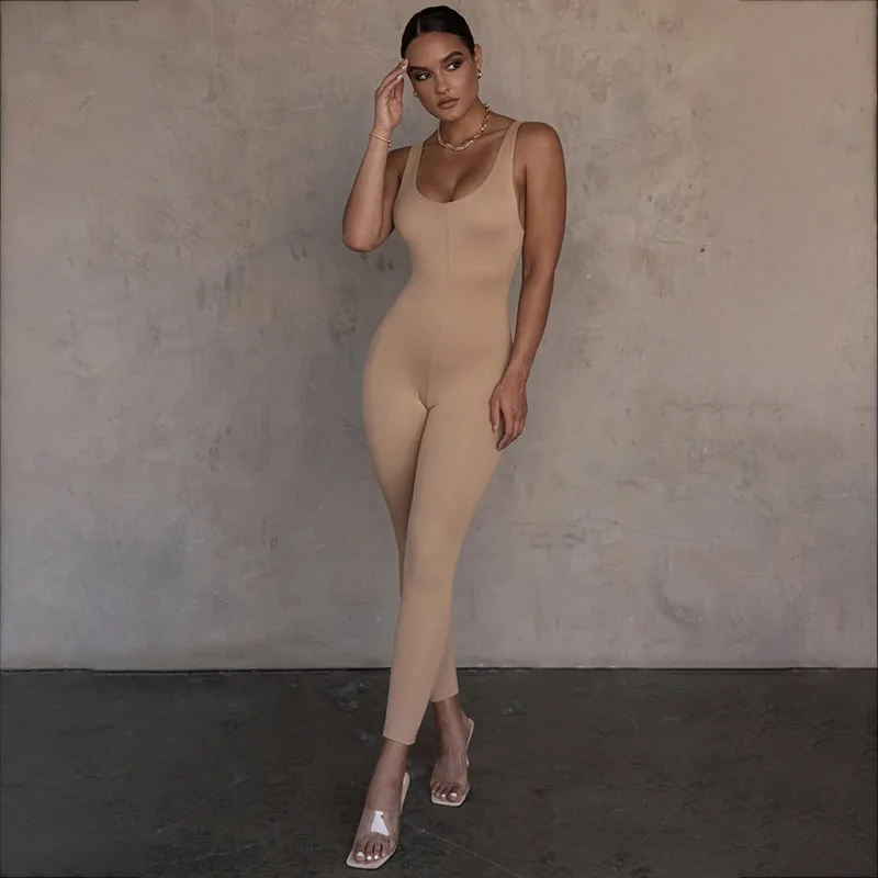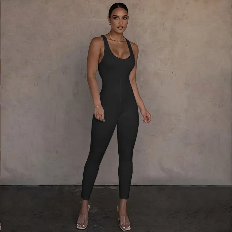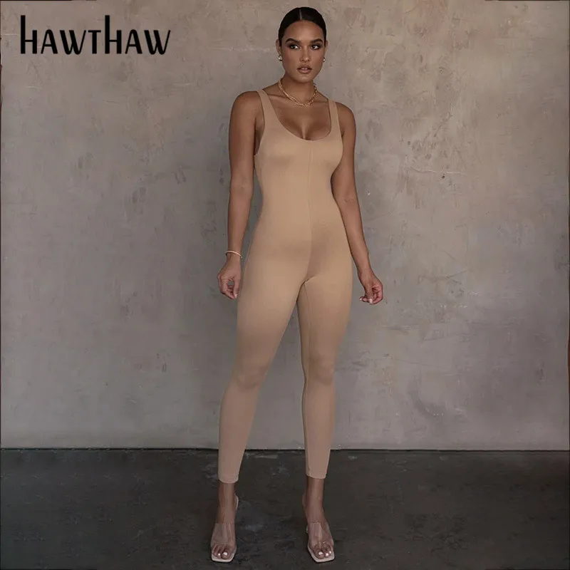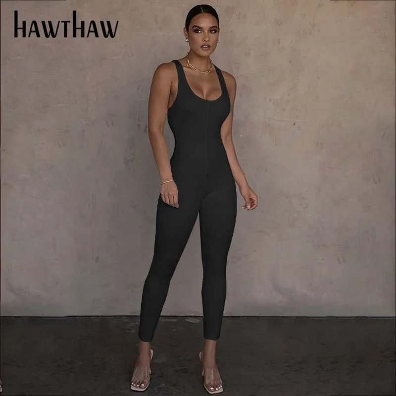 Женский спортивный комбинезон без рукавов Hawthaw, летний однотонный Облегающий комбинезон для фитнеса и тренировок, одежда для спорта на осень 2020