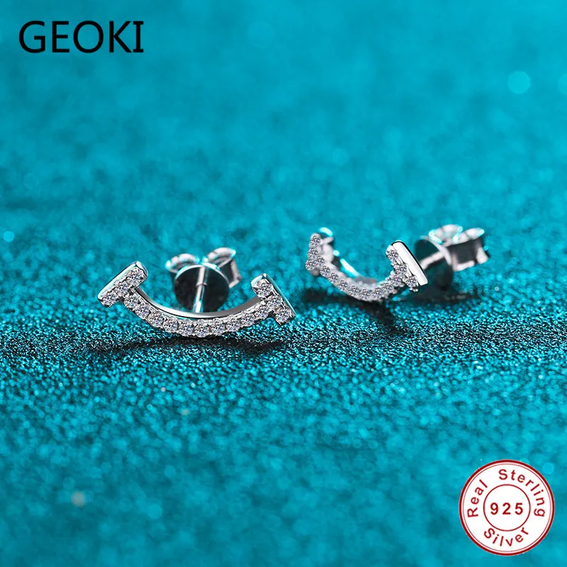 Серьги-гвоздики Geoki с бриллиантами Идеальной огранки 0,19 карата, в форме смайлика, с муассанитом, из серебра 925 пробы