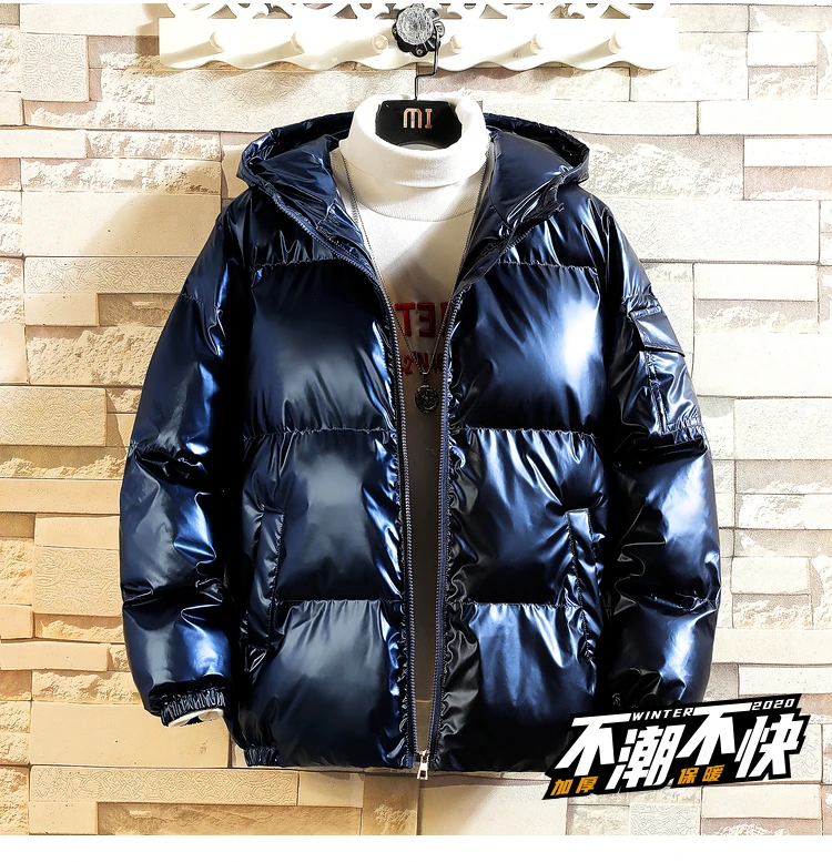 Зимние водонепроницаемые пальто, глянцевая пузырьковая куртка для мужчин, модная уличная одежда в стиле Харадзюку, парки с капюшоном, верхняя одежда с подкладкой для мужчин