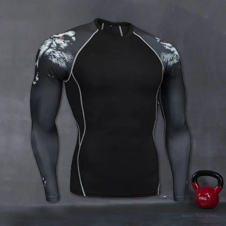 Компрессионная спортивная рубашка для мужчин с длинным рукавом Камуфляж Фитнес 3D быстросохнущая Мужская футболка для бега Спортивная одежда для тренировок Топ Рашгард