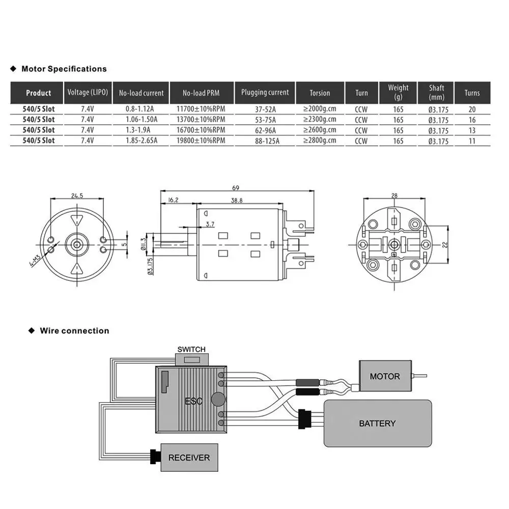 Двигатель шлифованный Surpass Hobby 540, 5 ячеек, 11T 13T 16T 20T с...