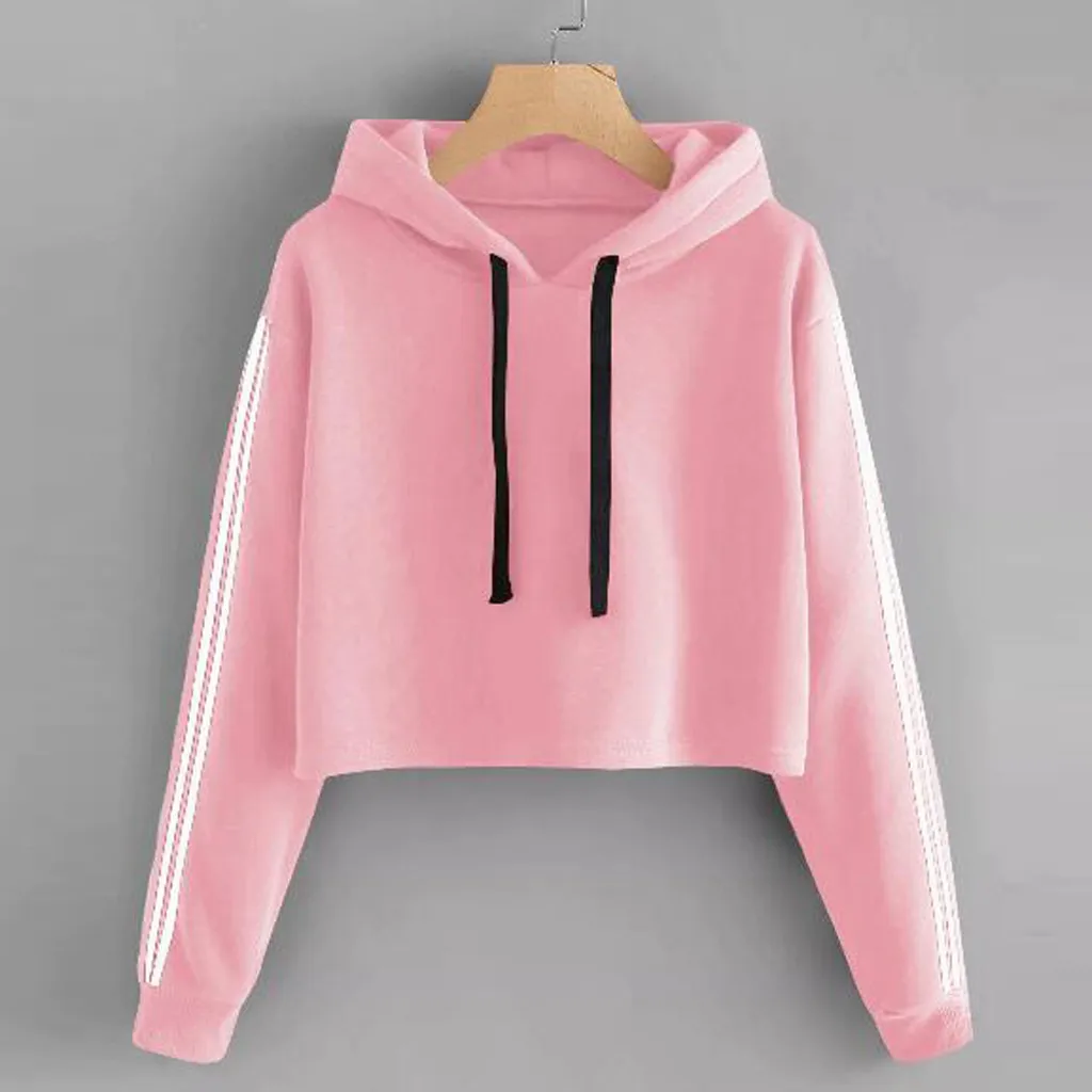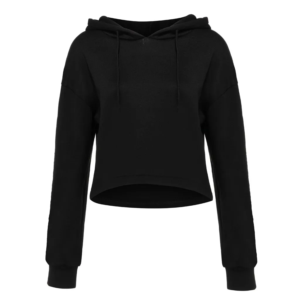 Укороченный женский топ, толстовка с капюшоном, модная однотонная Толстовка со шнуровкой и длинным рукавом, кавайная толстовка с капюшоном, топы, Женская толстовка