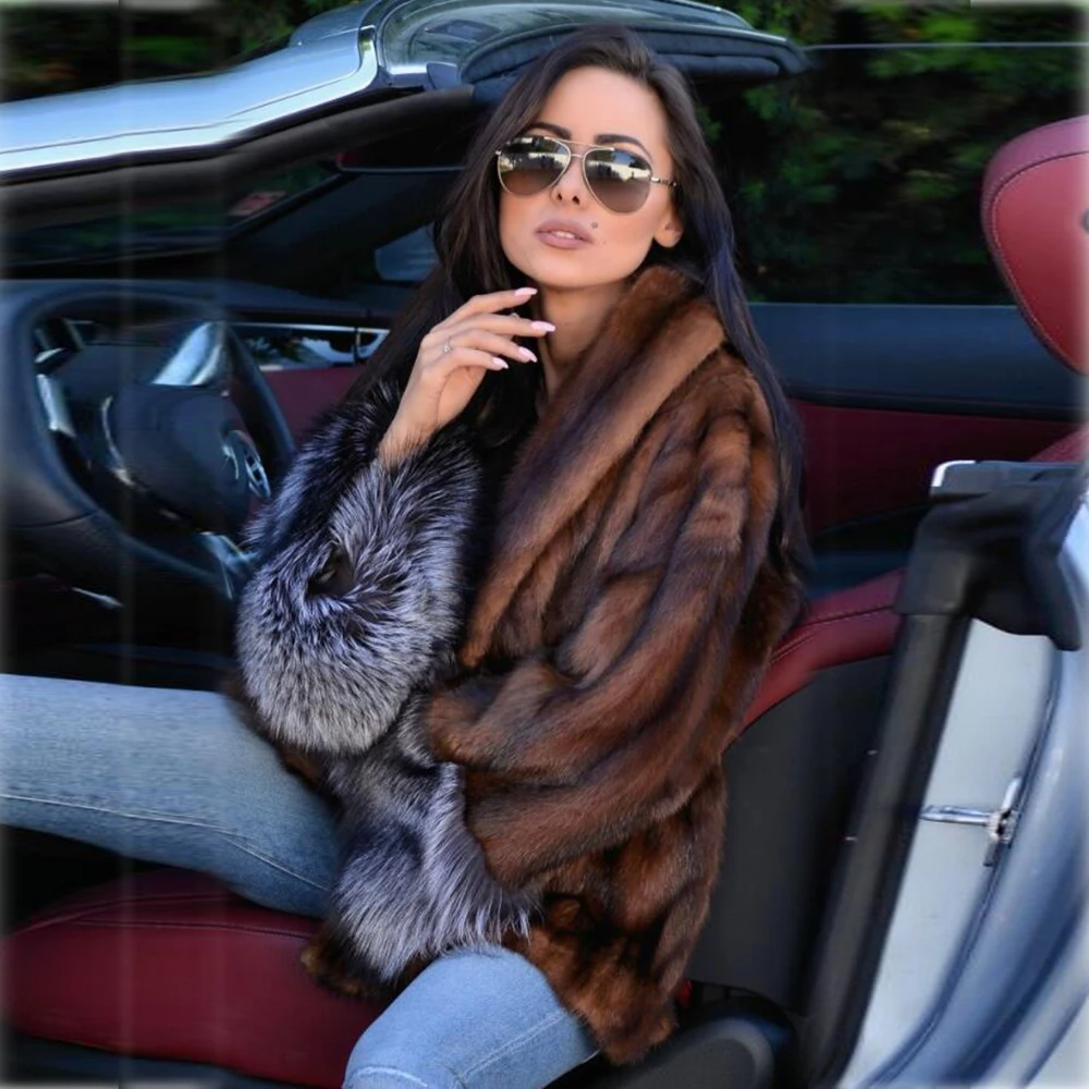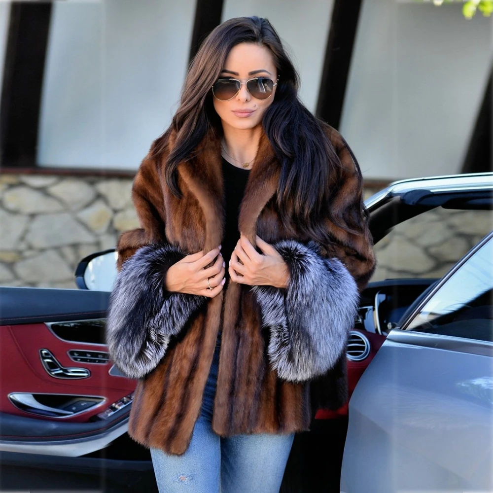 Норковая шуба из натурального меха, зимняя короткая Шуба с манжетами из лисьего меха