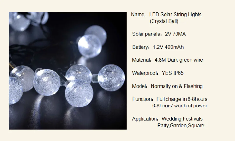 Светодиодный светильник на солнечных батареях для улицы, 6 м, 30 светодиодный шар с кристаллами, глобус, сказочные полосы для улицы, сада, патио, вечерние, рождественские