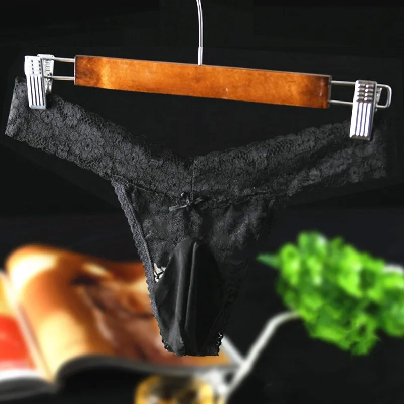 Соблазнительное Мужское нижнее белье с кружевом, Бесшовные Трусы-стринги, тонкие мужские трусы-танга, большие размеры, L-XXL