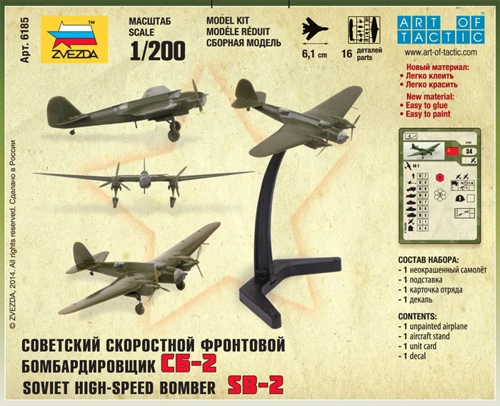 Сборная модель "Советский самолёт СБ-2" ZVEZDA 6185 масштаб 1200 пластиковая масштабная моделька Звезда