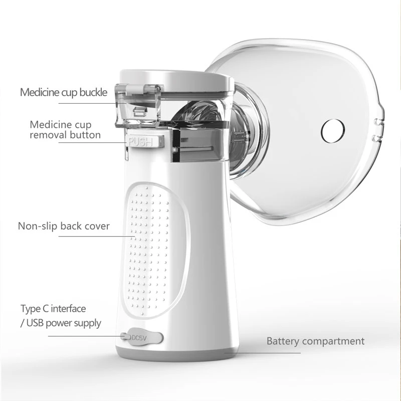 Размеры: 4,5x4,5x10 смМощность: 2,0 ВтРазмер частиц: 1-5 мкмРаспыление скорость передачи данных: ≥ 0,2 мл/мин.Рабочая частота: 120 кГц ± 10%Лекарства Кубок Ёмкость: 8 мл, 0,5 мл/минИсточник питания: аккумулятор или USB зарядка
