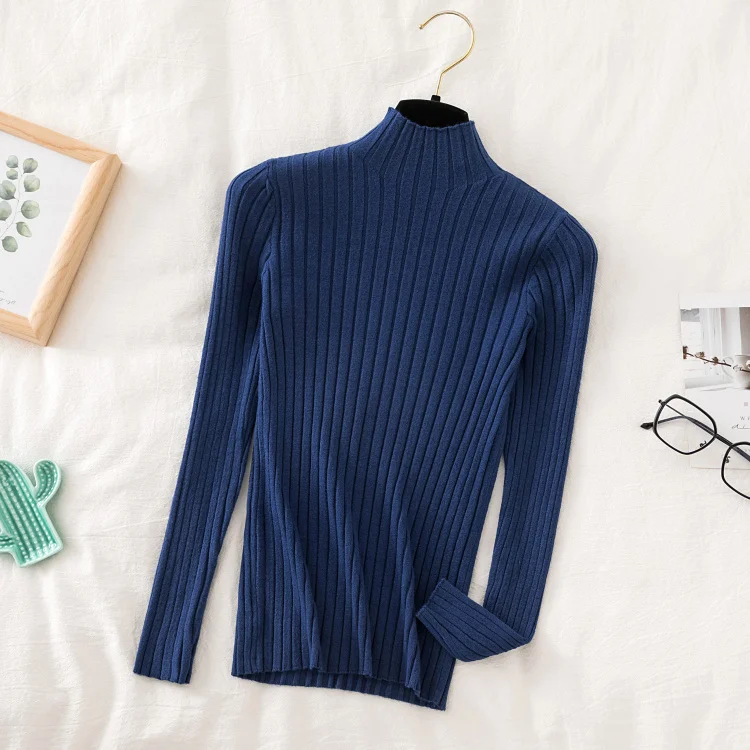 Croysier Пуловер Свитер Вязаный Женский Зима 2020 Высокий Вырез Базовый Тонкий Повседневный Ребристый Вязаный Топ Осенняя Одежда Женские Свитера