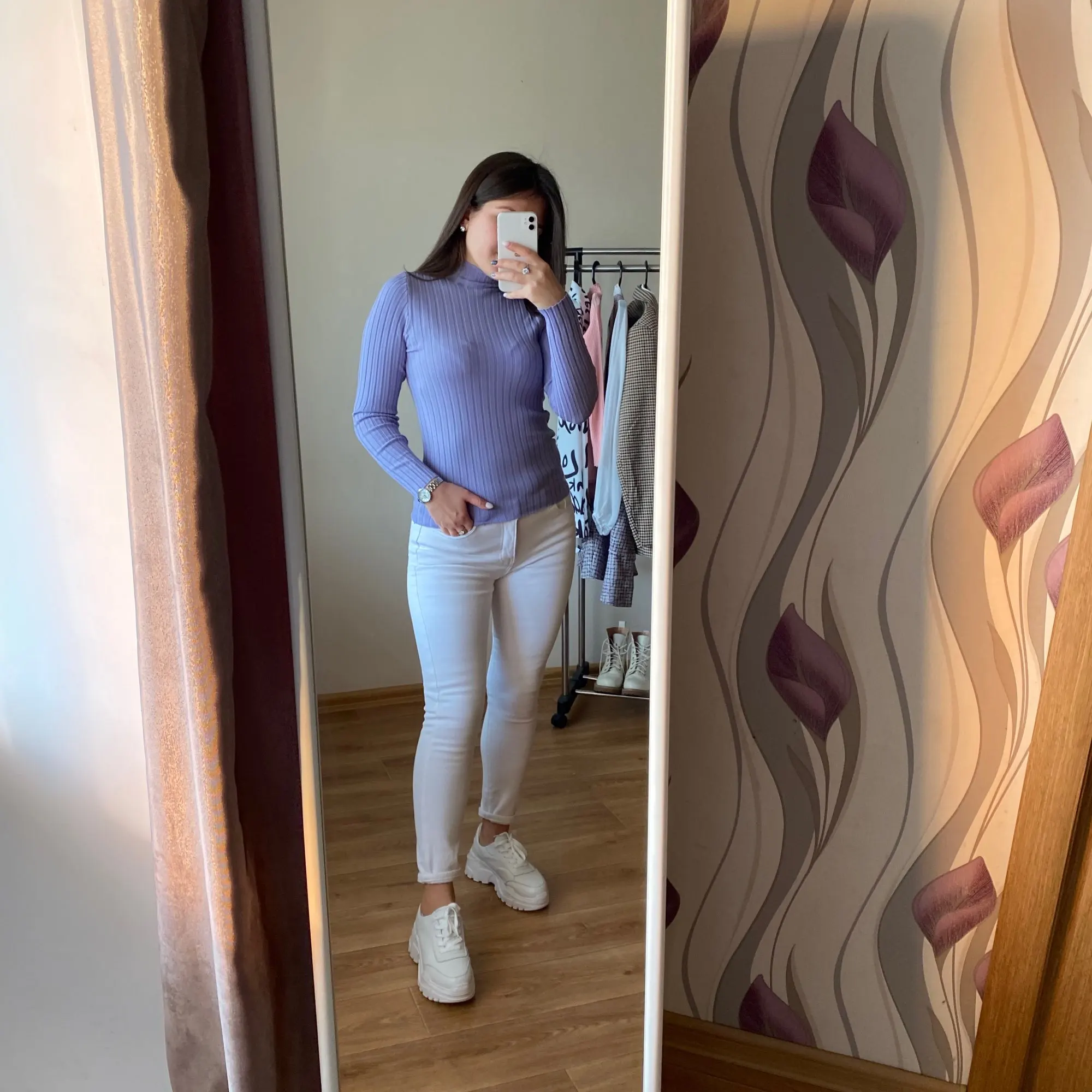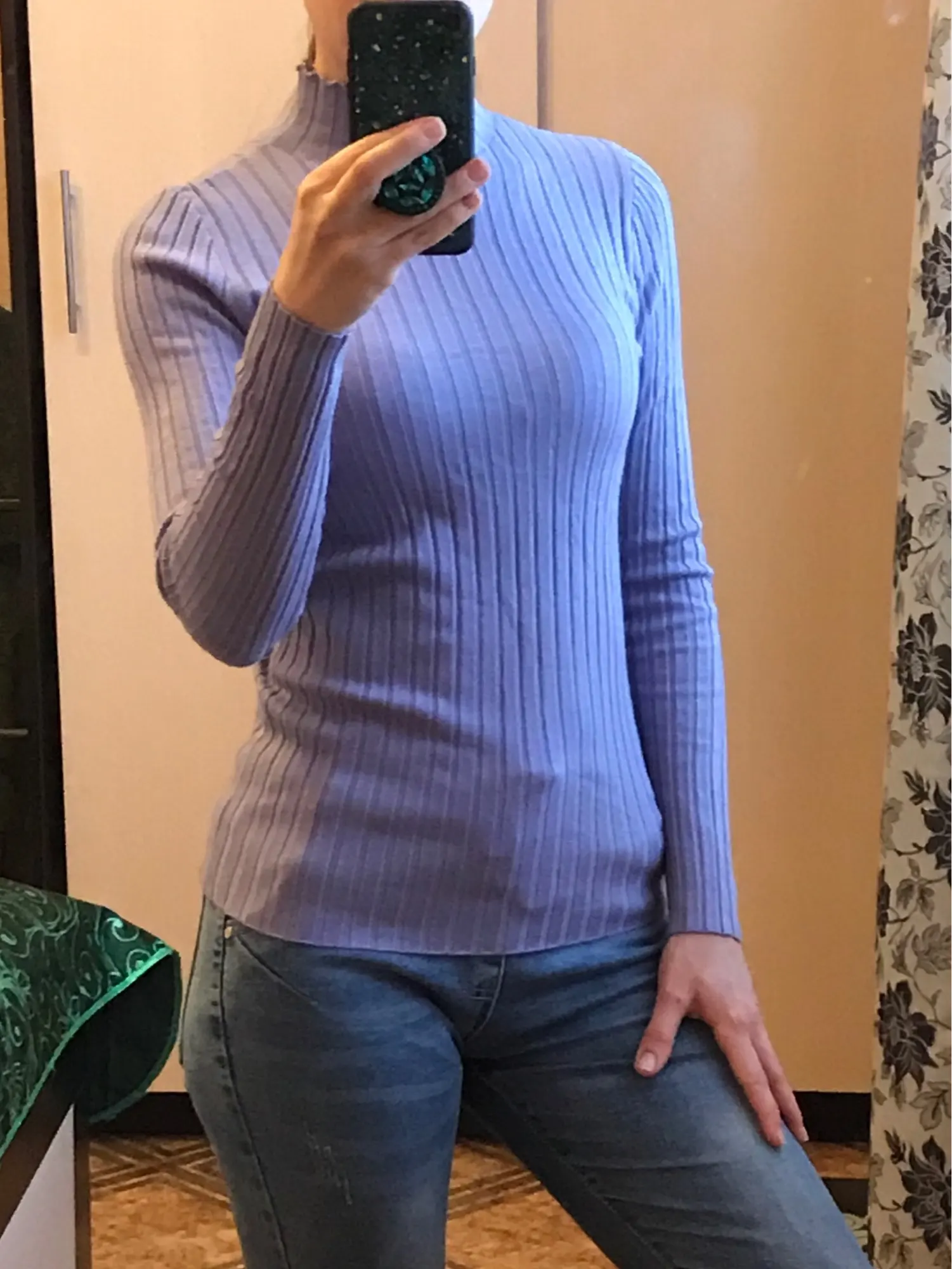 Приглянулась мне водолазка сразу цветом❤️ у меня очень много лавандового, но что поделать) Размер единый, на параметры 90-65-91см села хорошо. Единственное рукав коротковат, но мне он практически во всех водолазках такой. Ткань лапша, но с широкой полосой очень мягкая и приятная к телу. Горло не высокое и без швов, сделано цельным кроем. Пошив очень аккуратный, без торчащих ниток это вообще редкость! Доставка в Украину заняла три недели.