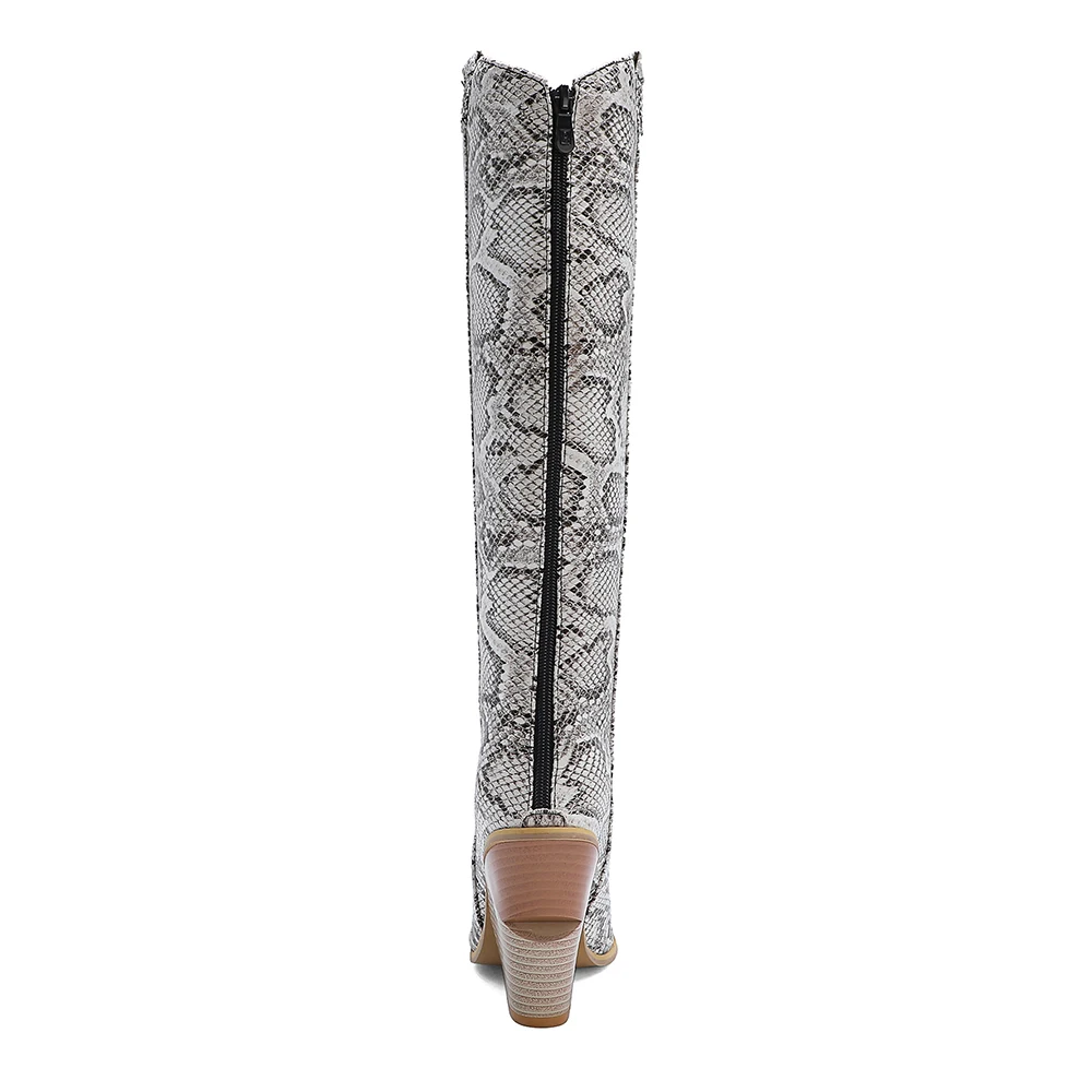 Черные, розовые, синие сапоги до колена ковбойские сапоги для женщин, высокие зимние сапоги мотоботы на танкетке с острым носком в ковбойском стиле
