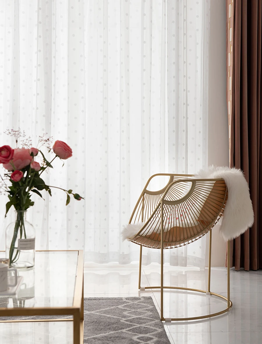 Белая кружевная занавеска для гостиной, спальни, занавеска из тюля с объемными плюшевыми точками для окон, занавеска для кухни