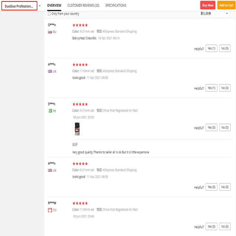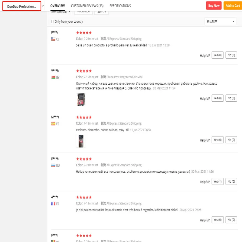 Страна: CL Color: 9-21mm set Доставка: Standard Shipping 18.06.2021