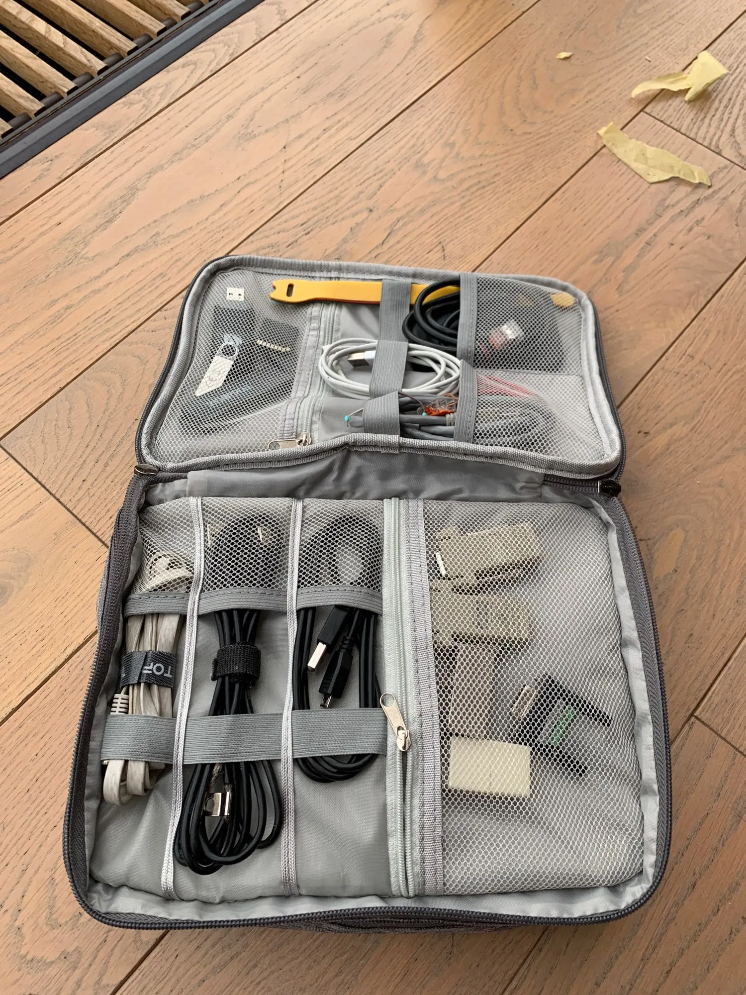 качественный органайзер, собрала все зарядки с дома, вместительный, даже большие зарядки влезают. советую
