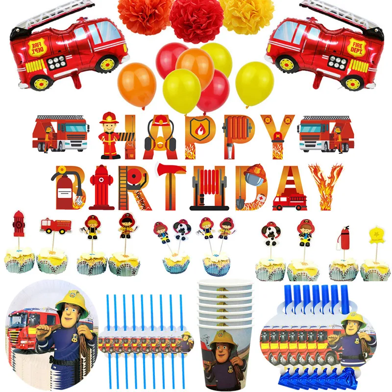 Пожарный Сэм бумажные стаканчики и тарелки украшения для дня рождения флаг торт Топпер скатерть воздушные шары товары для вечеринок детский душ