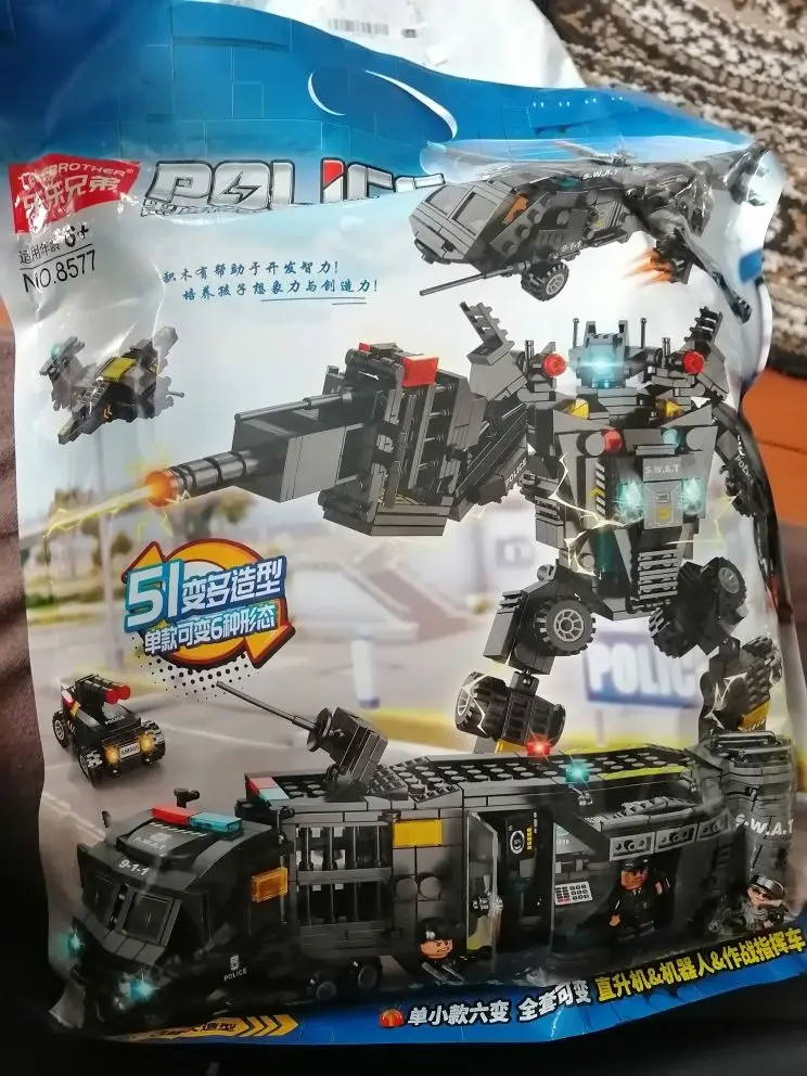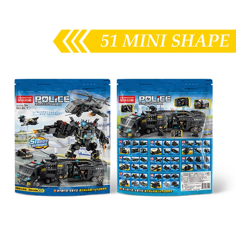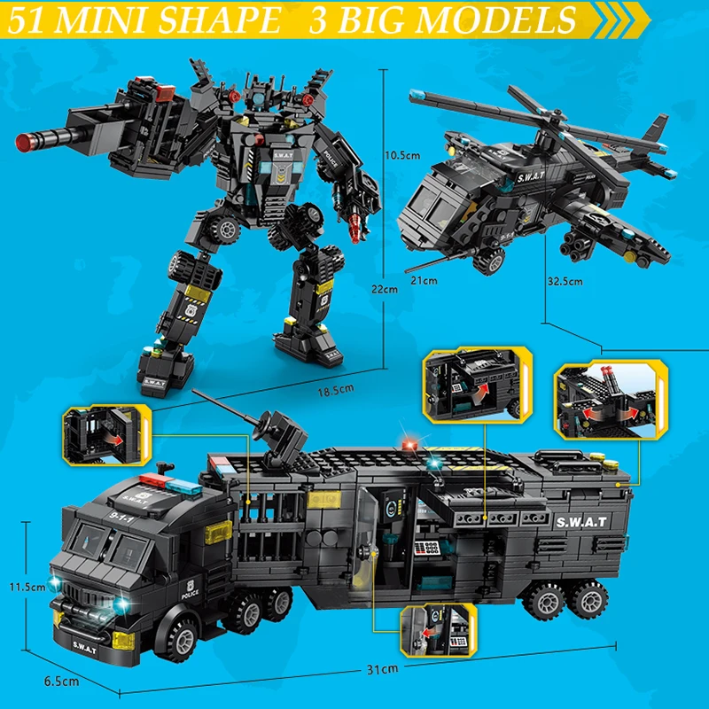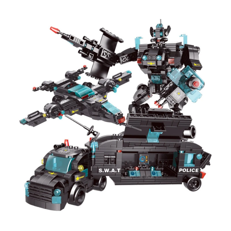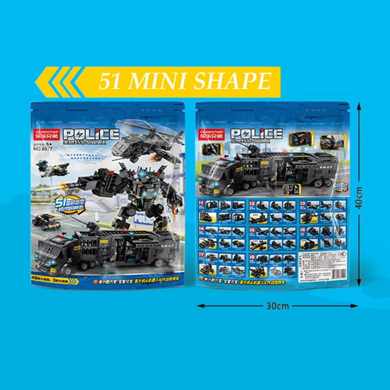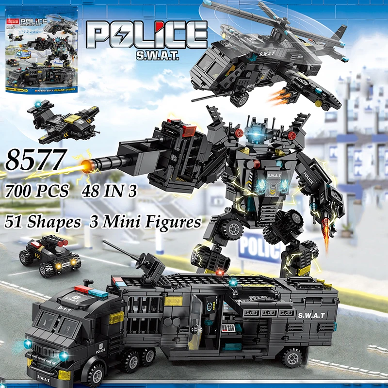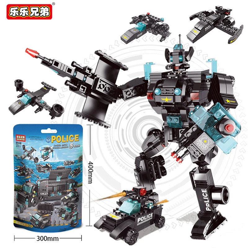 Миниатюрный полицейский командный автомобиль, строительные блоки, роботы-трансформеры для мальчиков, фигурки, развивающие игрушки, детский подарок на Рождество