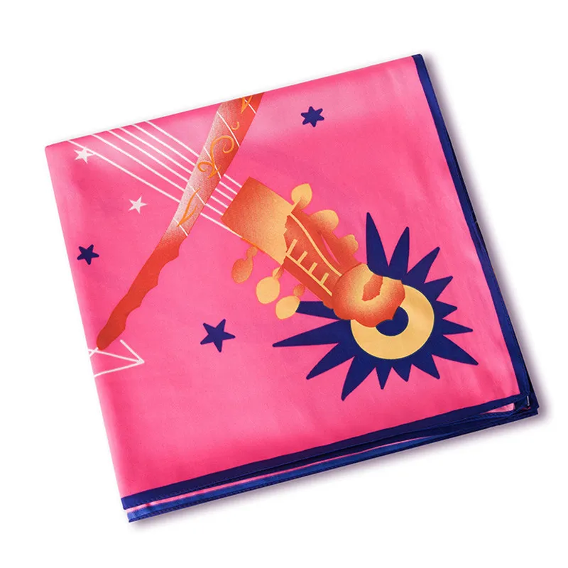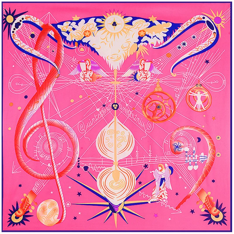 100% шелковый шарф POBING, женские Большие шали с принтом музыкальных нот, квадратные шарфы, бандана, платок, женский шарф, 130 см