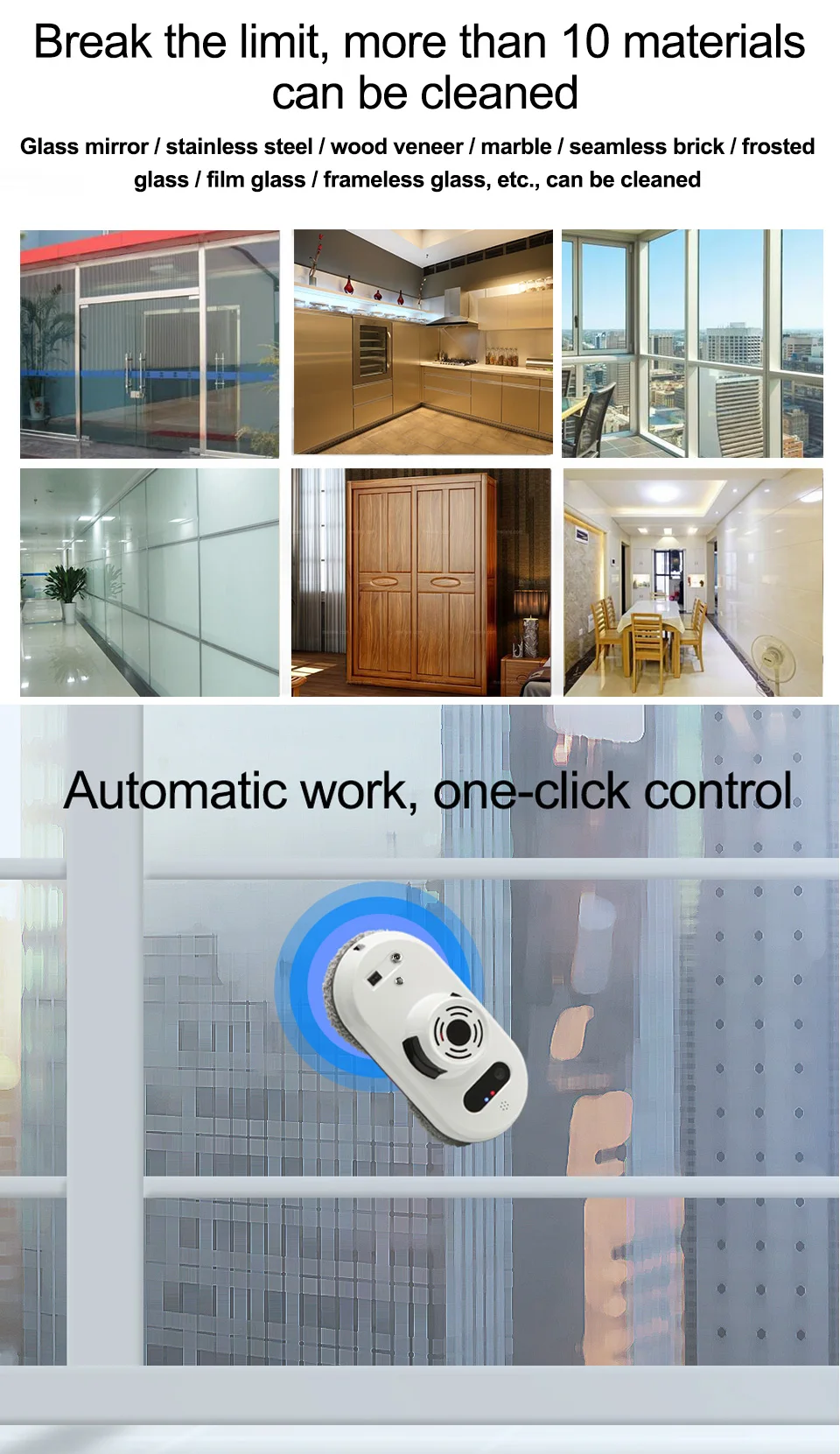 1. Автоматически определяет оконные рамы2. Анти-падение управления (при отключении питания, машина будет по-прежнему поддерживать всасывание и не падать.)3. Сильная Адсорбция вакуума4. Инфракрасный пульт дистанционного управления5. Функция: спланированный гироскоп/автоматическая односторонняя Очистка/автоматическое возвращение в исходное положение