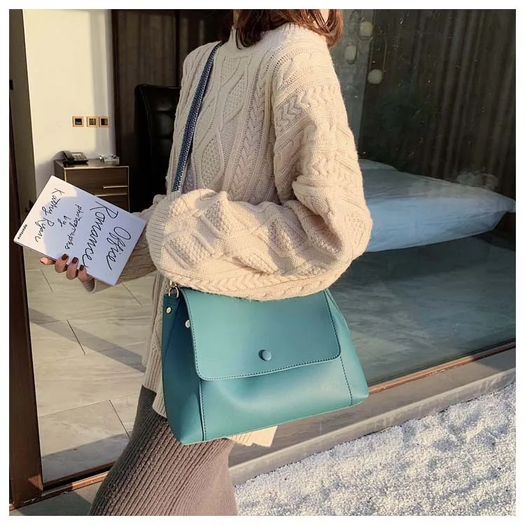 Сумка женская через плечо, однотонная, в стиле ретро, Ежедневные Сумки