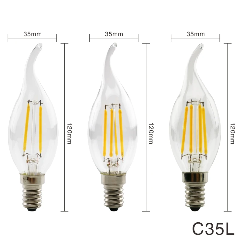 E14 светодиодный нити C35 лампа C35L Диммируемый стеклянный лампы в...