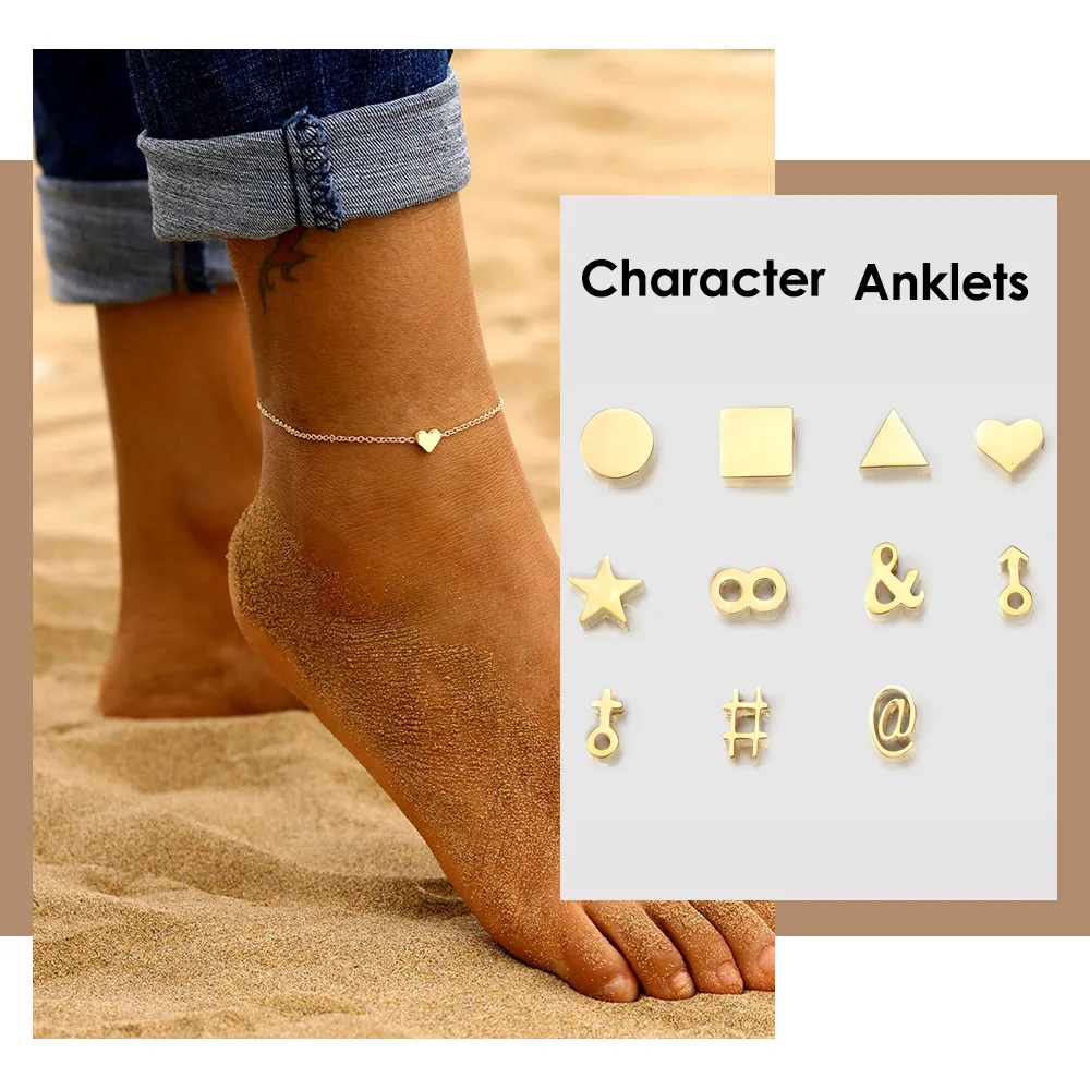 Ножные браслеты JUJIE женские, из нержавеющей стали, с символом, 2021, с геометрическими фигурами, кулон на пляж, украшения для ног