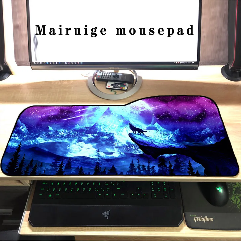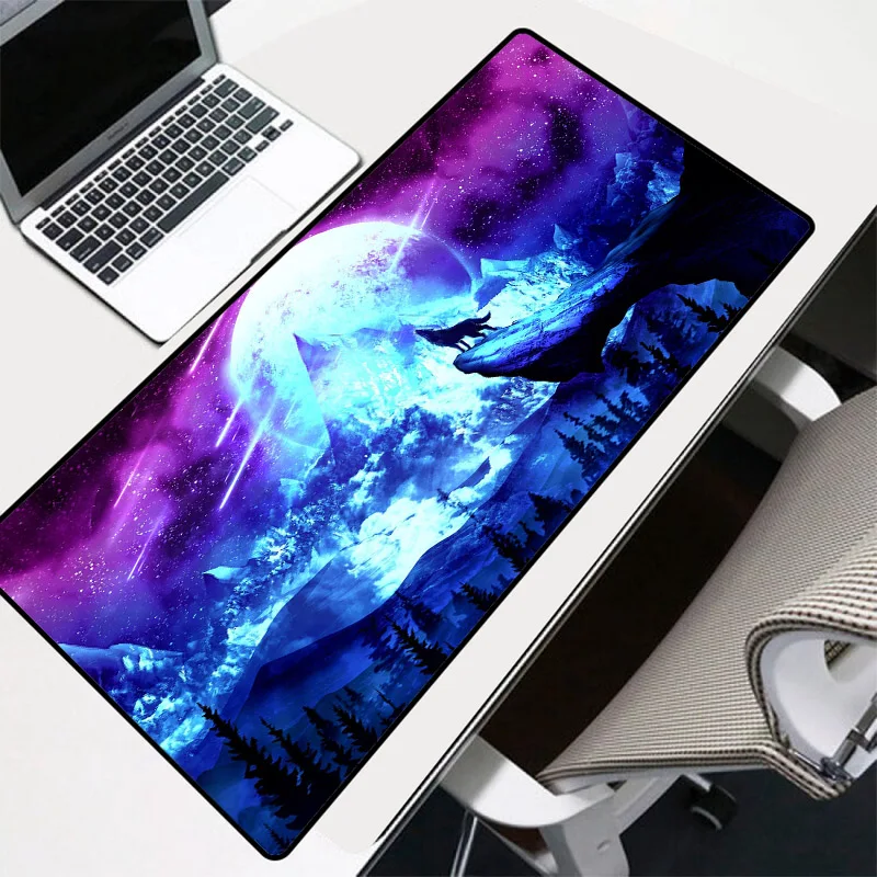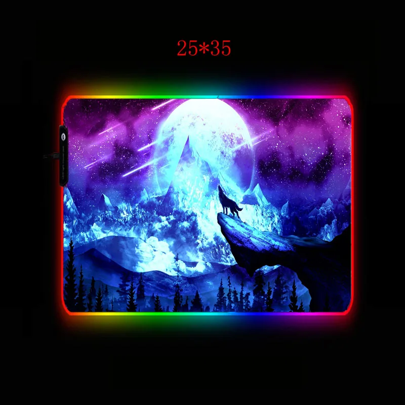 Игровой коврик для мыши Moon Wolf, большой коврик для мыши, RGB, размер XXL, Игровая клавиатура, Настольный коврик